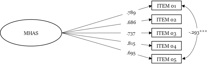 Por otro lado, el ítem 1 muestra la puntuación media más alta y el ítem 3; la puntuación media más baja. Esto quiere decir que las y los participantes están más de acuerdo con la creencia recogida en el ítem 1 sobre salud mental; y menos con la creencia recogida en el ítem 3 sobre salud física. Lo anterior es coherente con la literatura que señala mayor propagación de la desinformación sobre aspectos de salud mental (Berglas et al., 2017; Littman et al., 2014). No obstante, en respuesta al objetivo específico 2 y 3, el estudio de evidencias de validez basada en la estructura interna de la escala arrojó una estructura unidimensional; y los coeficientes de consistencia interna de las puntuaciones fueron adecuados. Estos resultados son indicativos de que la desinformación sobre aspectos físicos y mentales en la muestra de estudio se articula de manera conjunta, no pudiendo distinguir diferentes niveles de desinformación dependiendo de si los mitos hacen alusión a una u otra cuestión. Este resultado coincide con las medidas desarrolladas por otros autores (Berglas et al., 2017; Kavanaugh et al., 2013; Littman et al., 2014; Swartz et al., 2020). Por tanto, se encontraron evidencias de validez basadas en la estructura interna, así como evidencias de fiabilidad.