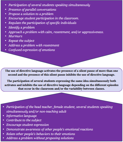 Por otro lado, el uso del lenguaje directivo activa la presencia de una pausa de silencio de más de un segundo y la presencia de esta pausa de silencio, inhibe el uso del lenguaje directivo.
